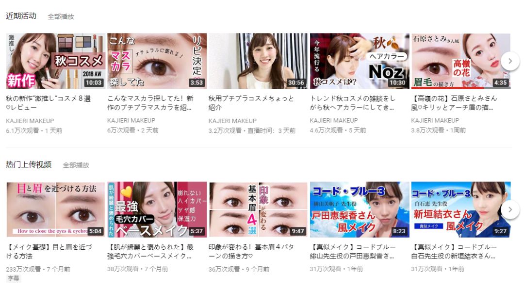有一种技术大拿不是不断地推新产品,而是用目前现有的产品发挥出最多的可能性,Kajieri就是其中的“陈独秀”。Kajieri是来自日本的专业化妆师,妆教中用的产品不多但是都很让人种草,有一种种草叫铁皮种草,妆容以修饰五官为主,妆感自然、真实、高级,真正的技术流。Kajieri干货很多,操作与理论齐飞,可以去B站上看她的中字翻译版。