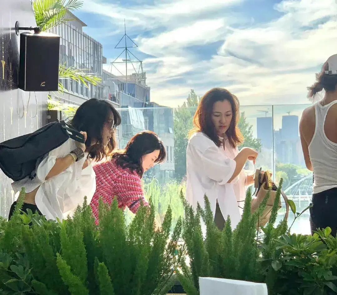 章子怡和下午茶被拍,跟好友聊天不摘墨镜,弯腰的一瞬间露出了腰部的肌肤,可以看到这个时候和朋友在喝下午茶,而且他们个个笑的都是比较的开心,并且这个时候脸上是完全没有化妆的