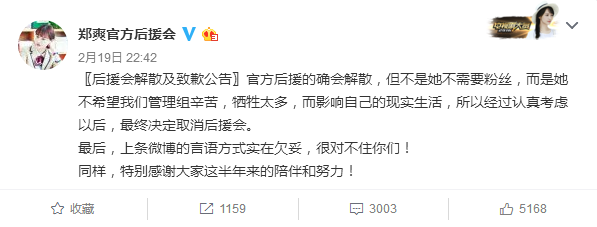 郑爽的粉丝后援会竟然宣布解散了!!!