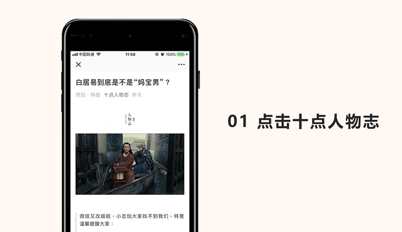 跟着下方动图,置顶“十点人物志”