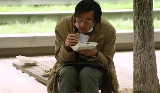大口大口地吃盒饭,就算自己吃不进去,但是为了活下去,他不得不如此。