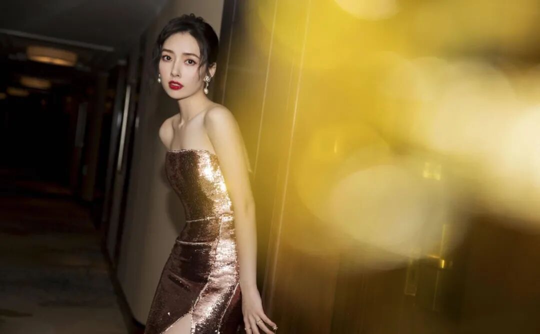 一身金色的亮片长裙彰显出了她窈窕动人的身姿,在灯光的照耀之下,更显星光熠熠,也让郭碧婷整个人看起来更加璀璨夺目。