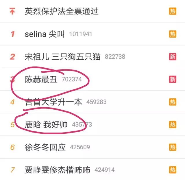 在节目播出后,鹿晗和陈赫都因颜值排名而上微博热搜,但两人上热搜的待遇却是天上的地下,鹿晗:你好帅!陈赫:最丑!哈哈!这真的是没有对比就没有伤害!