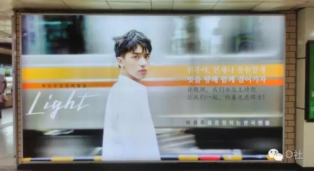从那时起,你就能感受到许魏洲在韩国的人气。在首尔建国大地铁入口,你们还能看见韩国粉丝为庆祝许魏洲发行新专辑的广告应援。