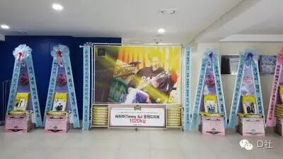 不亚于任何韩国的爱豆,粉丝club进行食物应援、演唱会banner应援、准备了1020KG的大米花篮。(许魏洲生日是10月20日)