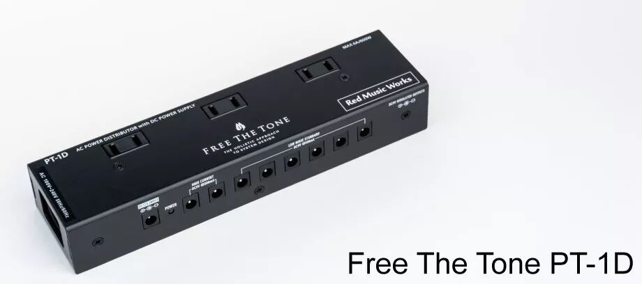 电源的选择Free the tone PT-1D的原因就是看中了面板上多出来的三个AC插口,完美的带动很多电老虎效果器比如eventide strymon free the tone这几个吃电大户,并且FTT这个品牌本身的做工和口碑也是十分靠谱。