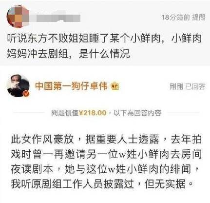 “东方不败姐姐与W姓小鲜肉传绯闻”