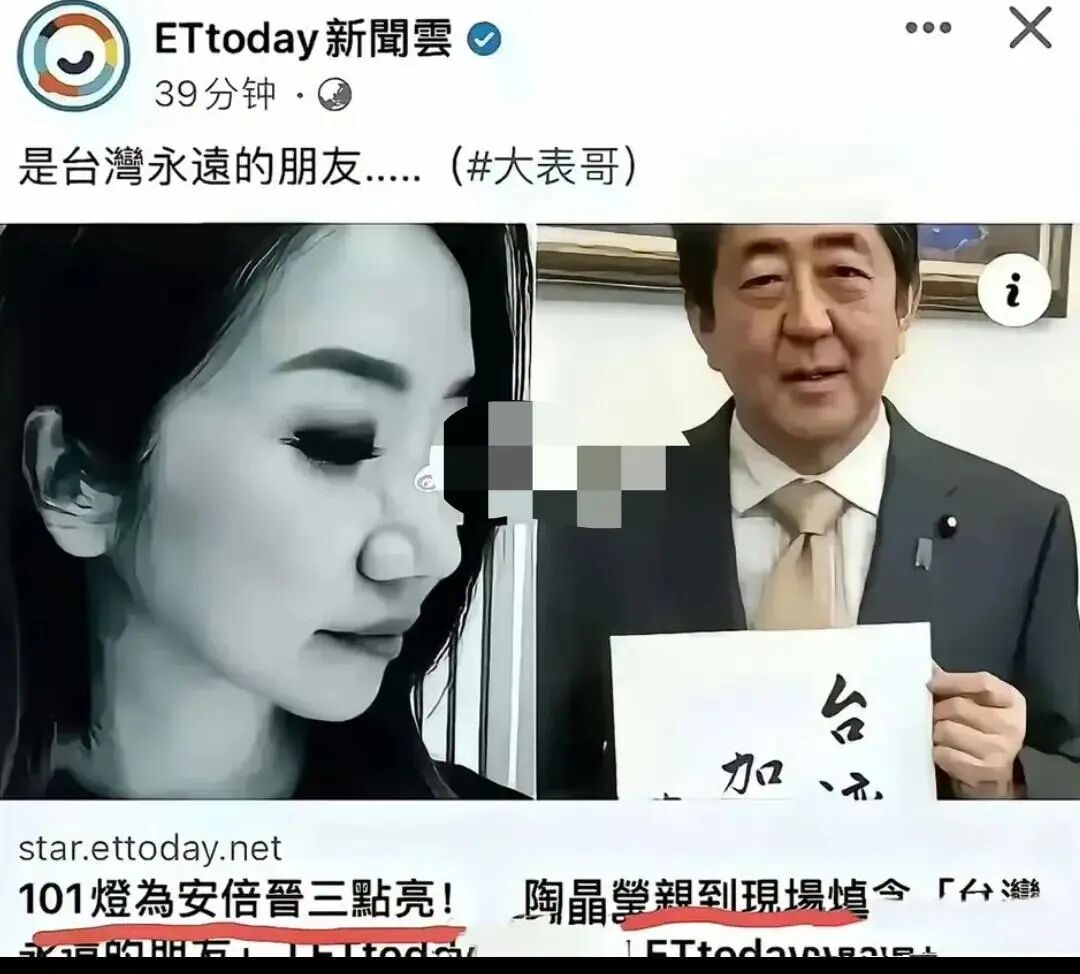 此外,“三立”电视台是岛内知名的“深绿”电视媒体之一,陶晶莹公开加盟。2022年日本首相安倍晋三被刺杀身亡,台湾101大厦打出标语“感谢安倍首相”,陶晶莹也毫不避讳前往101大厦悼念,并且发文留言“安倍总理”。