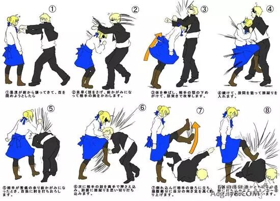 接下来还有「进击的巨人」中的兵长和「Fate」系列中的吾王等角色亲身为我们展示的简单易行的防身技巧,运用熟练的话或许也能在危险的时候实现自救。当然我们也呼吁大家作为路人遇到这种情况时也能明白这种强迫行为就是危害人身权利,是犯法的,不管当事双方是什么关系(包括比如说家暴等行为,不能因为是情侣、夫妻、亲戚关系而忽略),请在确保自身安全的情况下积极报警。