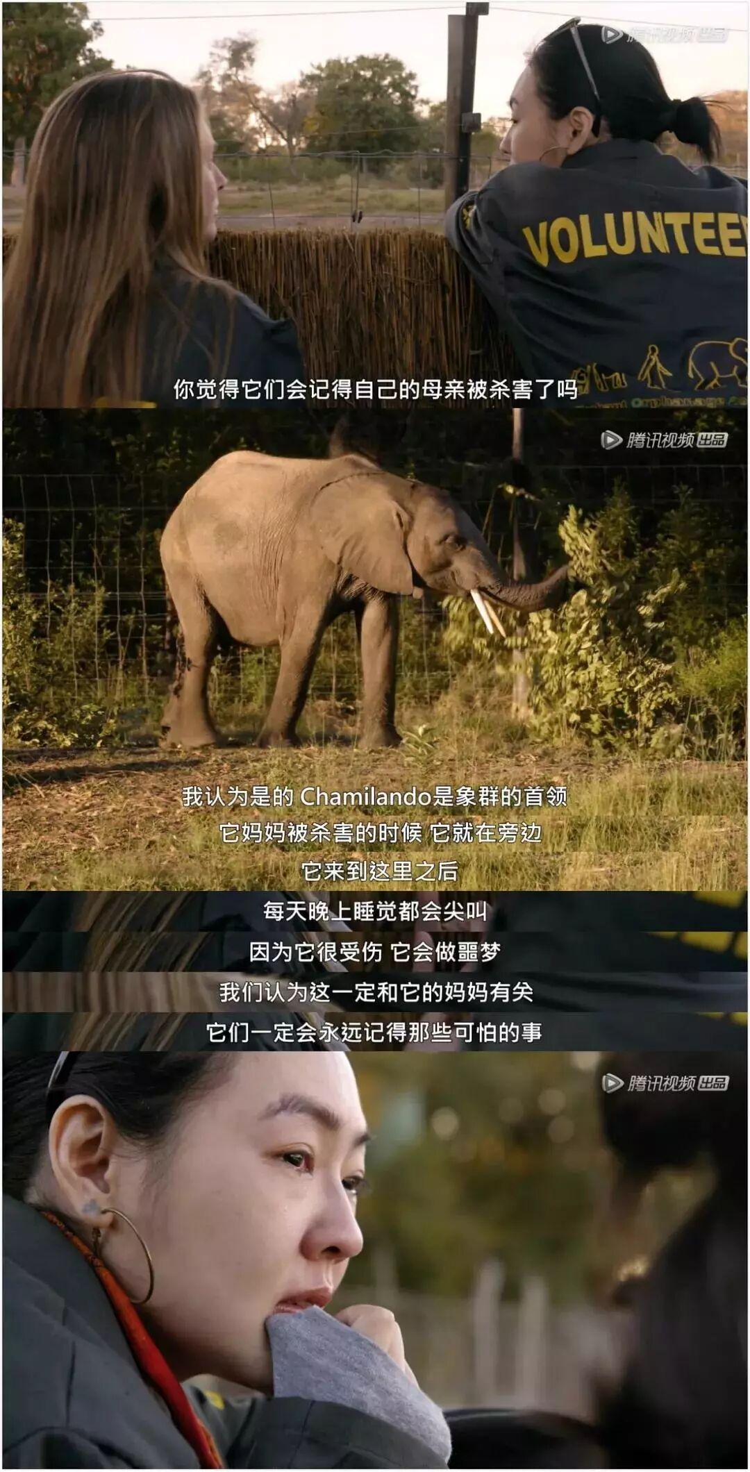 还有一段,小S听工作人员讲起小象因为曾目睹妈妈被猎杀的全过程,后来在很长时间晚上都会哀嚎……