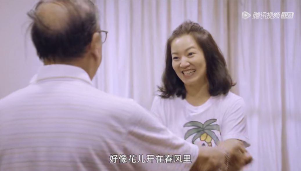 节目里,阿雅一边哼唱着甜蜜蜜,一边陪失智的老人跳舞。