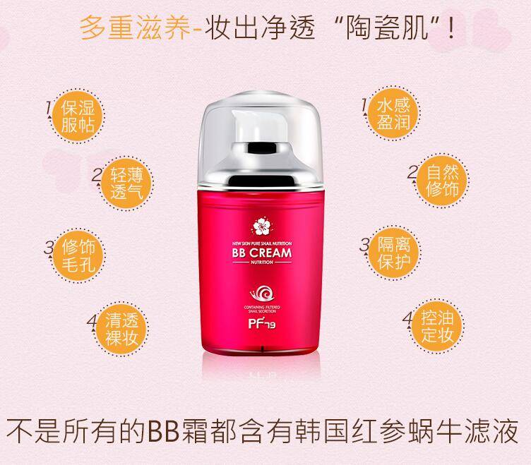 来自【PF79旗舰店】红参蜗牛BB霜~养出净透肌底,妆出美丽“陶瓷肌”