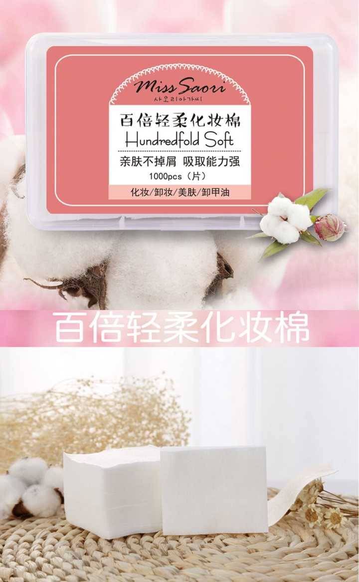 来自韩国的【Misssaori/沙织小姐】 胶盒装1000片化妆棉,百倍轻柔,触感温和,无荧光剂,升级版塑封膜胶盒装,1000片大份量~每个美妆妹纸的必备福利!