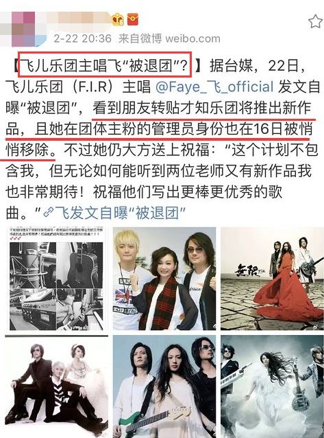 2月22日,新闻报道飞儿乐团主唱飞自爆“被退团”了。