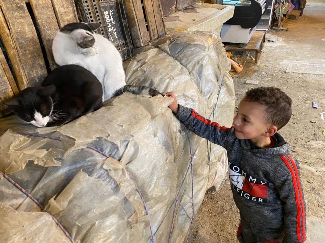 「然后就走过来一个小孩,这个小孩就揪这俩猫尾巴,