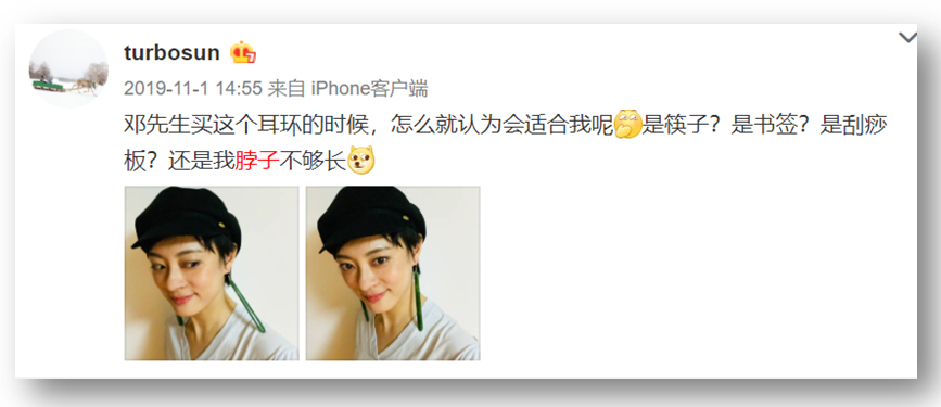 送给孙俪的耳坠so长,让孙俪怀疑:是不是我脖子太短。