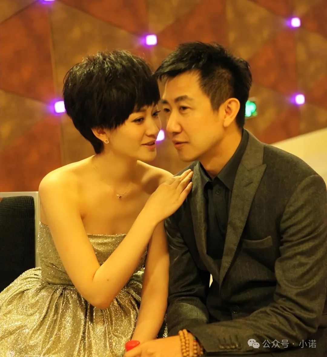 照片中的她皮肤白皙,穿着黑色低胸毛衣搭配白色短袖衬衫,显得非常优雅大气。虽然已经四十岁了,但看起来依旧年轻迷人。