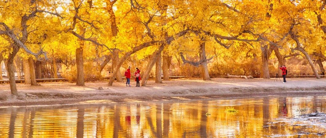 曾经绵延数十里的胡杨林,至今仍铺展开1700亩,一场轰轰烈烈的秋日童话,美得惊心动魄。