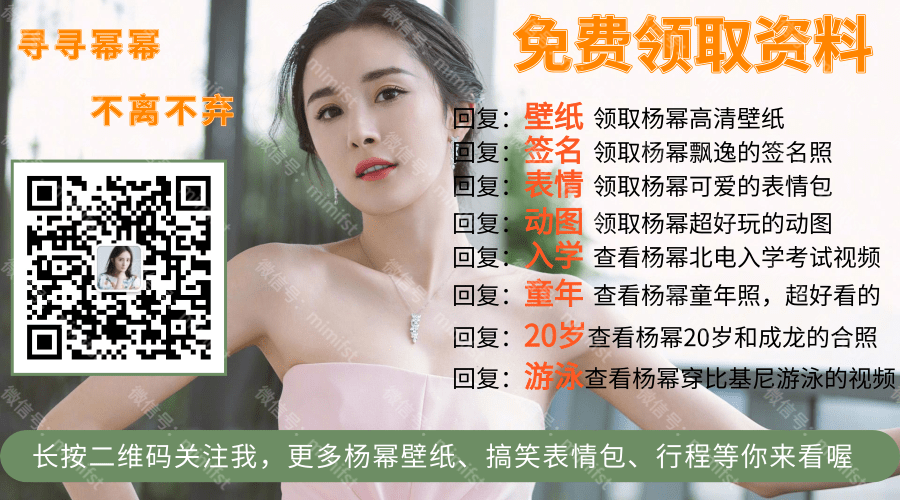 想看杨幂童年时的照片么?想看杨幂穿比基尼游泳的性感视频么?想看20岁的杨幂和成龙的合照么?长按上面图片二维码关注微信公众号回复对应关键词,你都会知道的!