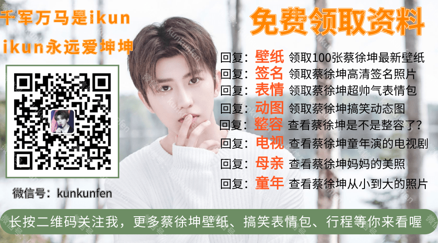 想看蔡徐坤出演的童年电视剧么?想知道蔡徐坤是不是整容了么?想看蔡徐坤的签名照么?长按上面图片二维码关注微信公众号回复对应关键词,你都会知道的!