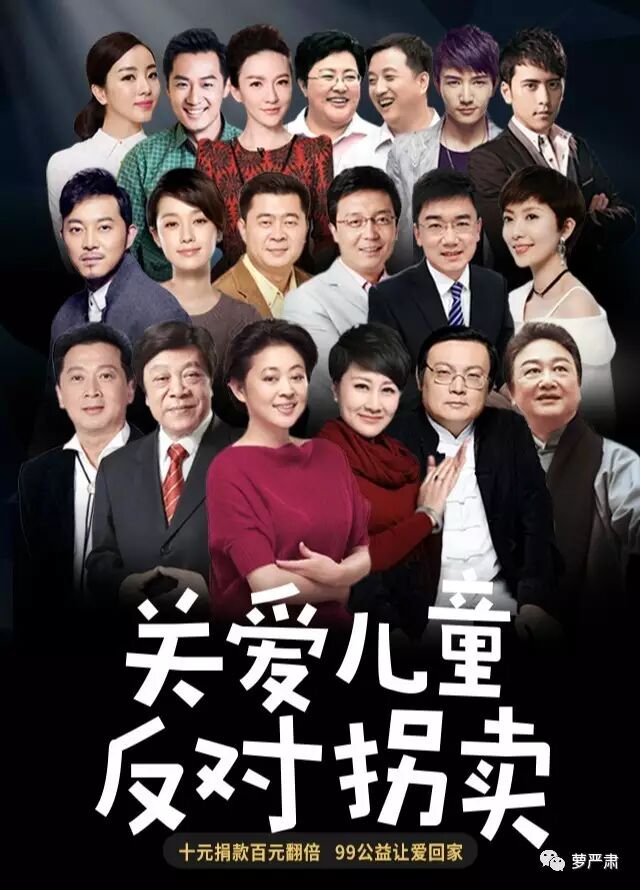 赵忠祥、倪萍、张凯丽、马伊琍等明星,共同发声,加入反拐队伍,号召大家一起关注与保障广大儿童的合法权益。