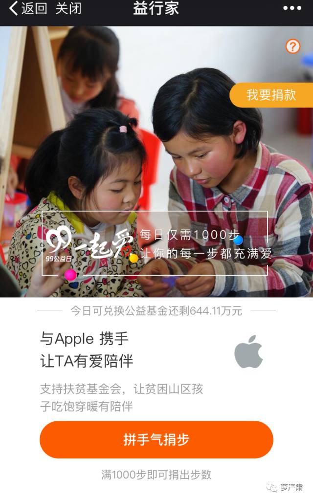 还有,像微信运动里的步数,也是做公益的方法。微信有“捐赠步数支持公益项目”,将用户每天花在上班或跑步机的时间,变成帮助他人的财富,走路也能做公益。听起来是不是很棒?