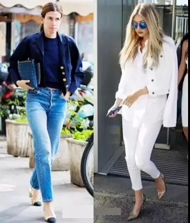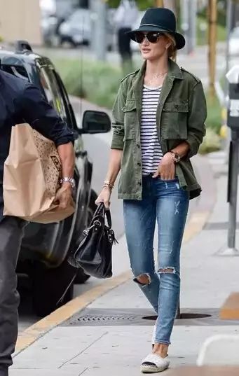 搭配一件条纹衫衫+破洞牛仔裤,简单百搭,一双平底鞋更加舒适~