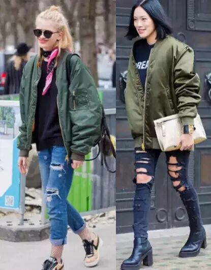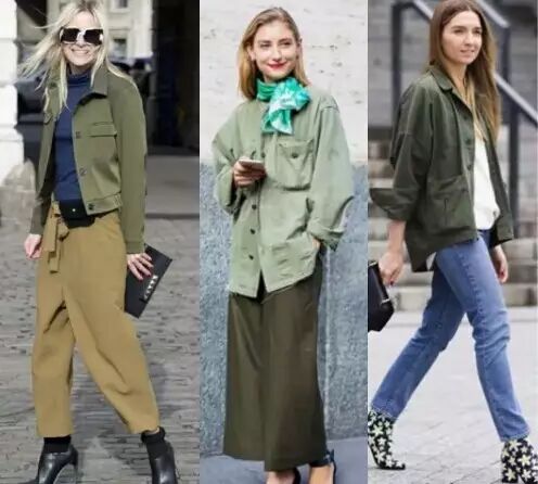 还有下面这种军绿色的夹克,也是流行的很~