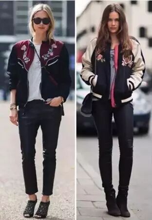 上面是各品牌的早春系列,而棒球式夹克应该算是春秋耍帅的基本款了,搭配裤装简约随性,想要柔和一些,可以搭配半裙~