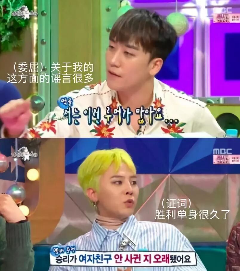 再说个小八卦,之前胜利之前透露自己想要找个善良的女朋友,因为他之前被人劈腿了,听起来是不是很心酸!