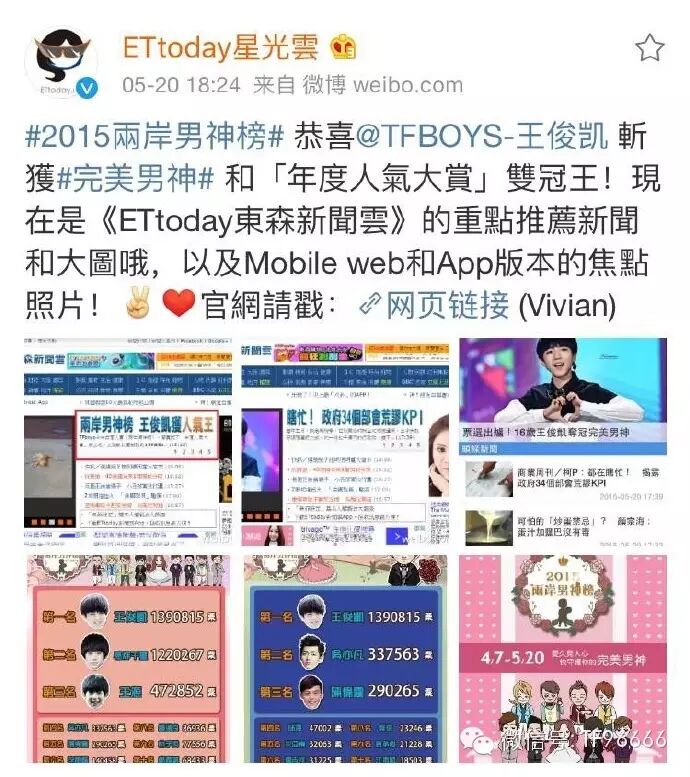 承包了百度沸点人气尖叫榜冠军、两岸男神完美男神和年度人气大赏双料冠军、90后十大影响力人物榜首。