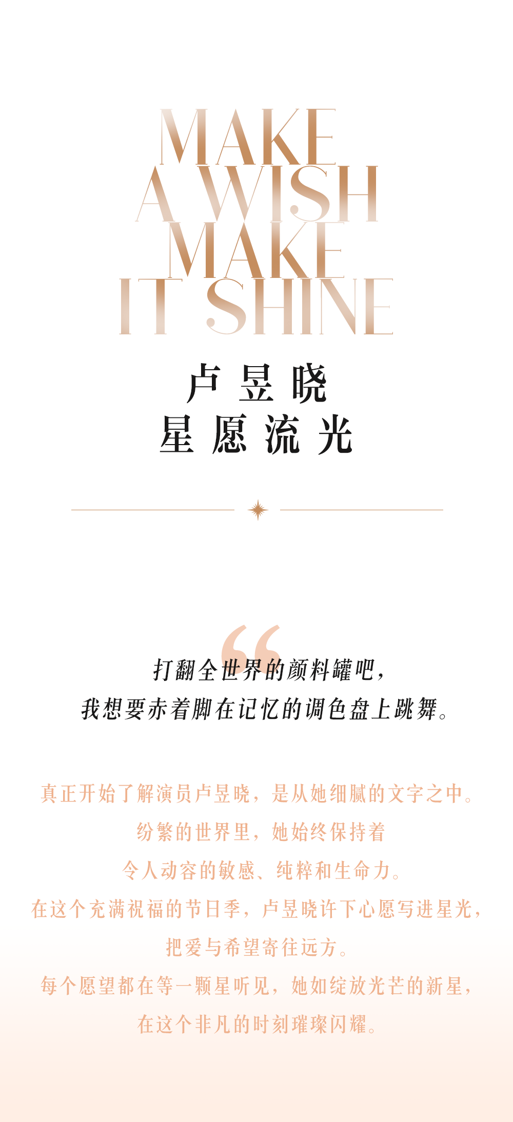 她真心地希望,自己能更有影响力一些,发声可以有更高的传播度,让更多人能够正视动物救助的问题,这是卢昱晓给自己来到人世间一趟安排的“使命感”。作为演员,作为人类,作为宇宙中不可复制的存在,她还在努力扇动着翅膀,今天吹动一片叶,明天带来一阵风,直至未来掀起风暴。