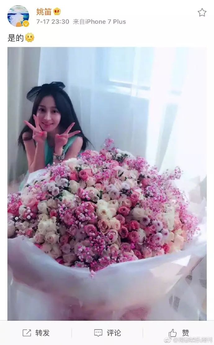 今天,姚笛在微博晒出一大捧花,双手比V宣告恋情有了着落,这一切来得猝不及防。