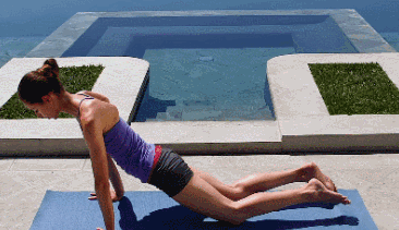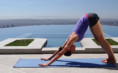 双手撑住地面不动,腿伸直再次做下犬式姿势,注意上身一定呈一条直线,不要弓背,脚跟也不能离地。然后向前提起一条腿,颔首尽量将头部与膝盖靠近,慢慢向后抬举腿,尽量伸直指向空中,呈单腿下犬式,收回腿后换另一边重复动作。