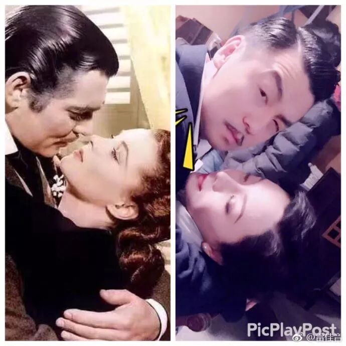 《和平饭店》将美术定位在art deco风格,撞色,对比强烈。“如果是普通的饭店,我就不能演得太戏剧化,但在像《布达佩斯大饭店》这样风格的背景下,我就可以戏谑一些。”雷佳音说。所以导演为他的男主角设计了两撇小胡子,这是向克拉克·盖博致敬,包括他与费雯丽在《乱世佳人》中经典的下腰拥吻造型。