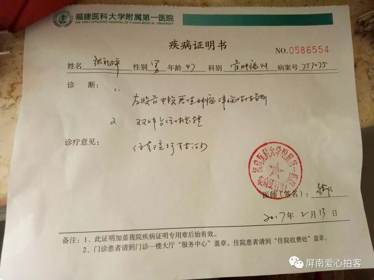 屏南爱心拍客平台接到张远钟求助信息,经屏南慈救会多名志愿者多方查证,张远钟父亲叫张礼坪1969年出生,屏南县代溪镇九洋村谢厝里人(谢厝里下面自然村十几户)。张礼坪2016年8月感觉呼吸困难,到宁德市第二医院后转到福州肺科医院治疗。2017年1月18病情复发,医生确诊为左大腿骨折,确诊为恶性骨肿瘤并转移到肺部, 30多万医疗费用,本就不是贫困的家庭,雪上加霜,负债磊磊,后续的医疗费用还是个天文数据,请社会爱心人士伸出温暖的手,帮助他们一家度过难关,我们屏南慈救会志愿者都可以为他们证明,情况属实,一方有难,八方支援,好人一生平安,谢谢!!!联系人:张远钟,电话;15159304060(微信同号)张礼坪轻松筹入口:http://m.qschou.com/project/index/cdab6e46-1a08-4f82-92cf-0c95881c1e8e?uuid=e719b34d-f191-4127-89c0-1759420317f6&platform=wechat&shareto=2×tamp=2017021612383085842213099