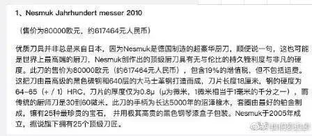 有眼尖的网友还发现,周笔畅手上用的这把刀,价格高达60万,是德国制造的超奢华的刀具,是世界上最高端的厨刀。