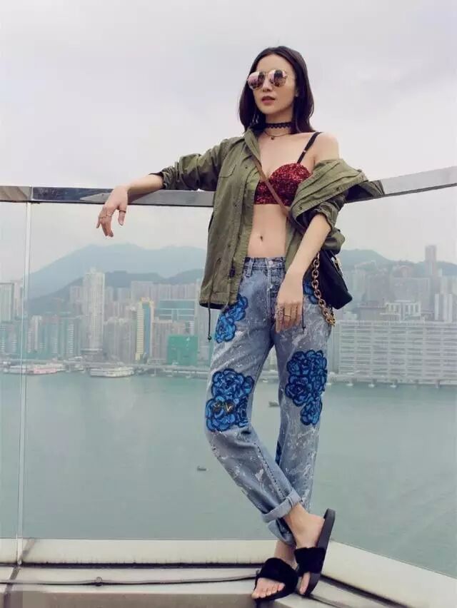 ▼林允外穿的这种运动bra,配牛仔很有活力呢!少女们照着样子平时就能穿哦。