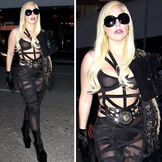 ▼如今,Lady Gaga穿起SM,上身薄纱的bra,若隐若现的两点,脚踩黑色巨跟鞋…自虐也是一种酷。