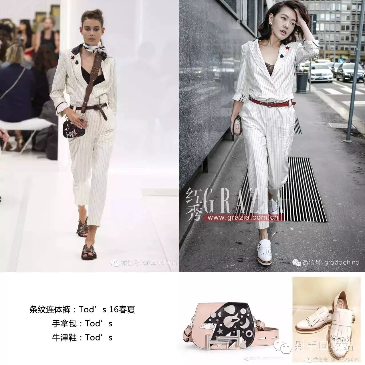 这一套其实是小S在试装的时候穿过的一套GUCCI,本来应该是穿去看品牌秀的,当时我们就说把红色板砖换成尖头高跟鞋会好看很多,结果S却只保留板砖,选了一套列侬同款刺绣白西装去看秀,真的是万万没有想到。