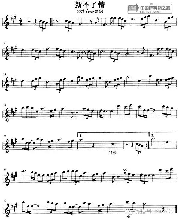萨克斯《 新不了情》谱