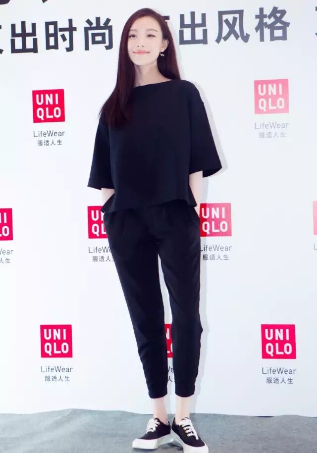 宽松T恤上衣搭配束口裤,登上一双maison kitsune的黑色厚底鞋,如此简单的基础单品,倪妮一秒穿出大牌的感觉。