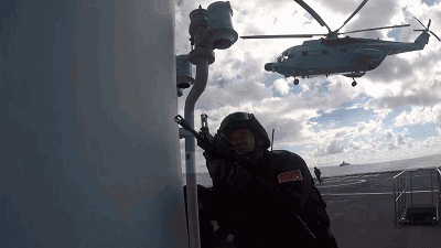 然而,故事中的原型、电影里的特战队员还无暇走进影院,欣赏自己在屏幕上的风采。此刻,他们正航行在东印度洋,整个假期是在高强度的远海训练中度过。