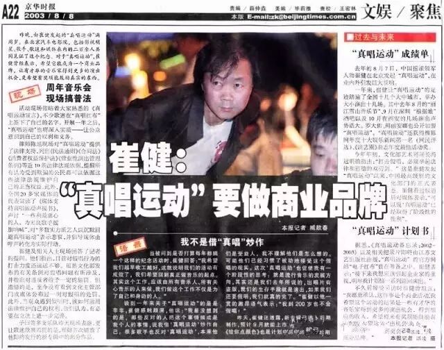 崔健:最主要的成果是,我发现了我们生活环境的恶劣性。人们已经太长时间不听真的东西,觉得真的东西变成一种邪恶了。我们面对的是同样的病态,我们都已经病入膏肓了,还不知道自己已经生病了。有那么多东西值得批判,早就应该有人站起来,为什么等毒死人了才站起来?非要人进医院了才站起来?我前两天听说演艺圈的一件事,我都不敢相信自己的耳朵,一个演员亲自跟人谈判,说你让我演戏吧,我就跟你睡觉,已经连经纪人说话的那种含蓄都不要了;还有人送自己女儿跟导演睡觉。都成了这么一帮人了,灵魂都跑哪去了?浅薄的东西是不会死人,但它是非常坏的,它杀死一代人的灵魂,但是有人站出来吗?