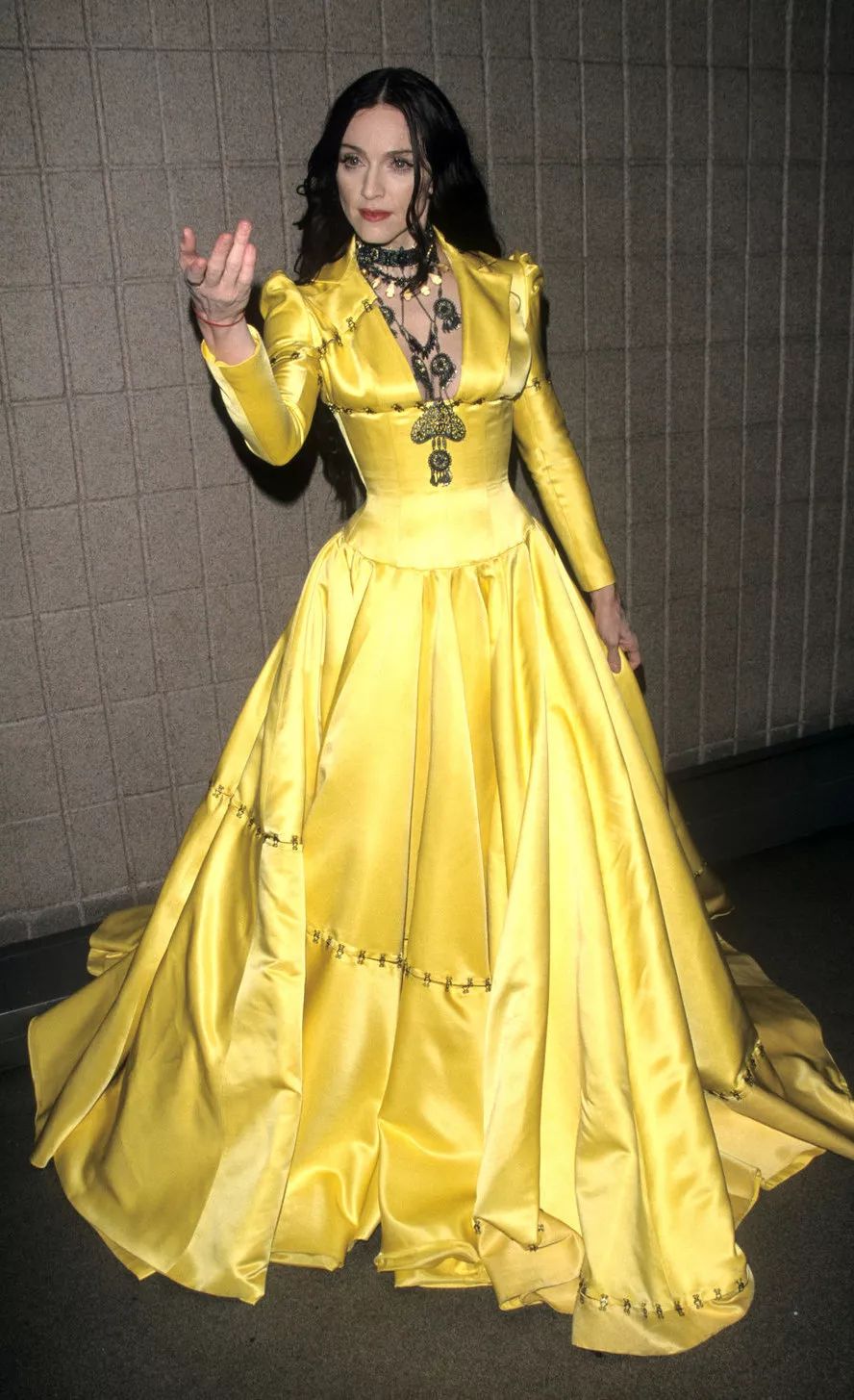 就像她自己在致敬MJ时候所说,我们都是凡人,我们没有办法对抗生死,也没有办法对抗地心引力。再叛逆的少女都会老去,即使站在世界之巅,也无法跟时间抗衡。麦当娜当然也会老,她在90年代的最后几年,脸非常的垮。当时她喜欢上设计师Olivier Theyskens,连着两个红毯都穿着Olivier设计的礼服出现。也在1999年再次走上Jean Paul Gaultier的T台,演绎了一件大红色的日本和服。品味依然是好的,可是脸上衰老的痕迹让人看着惊心。跨过2000年之后,医美技术日新月异,她的脸上重现光彩。穿衣的风格更是回归到年轻的时候——典型的美国式大妞。