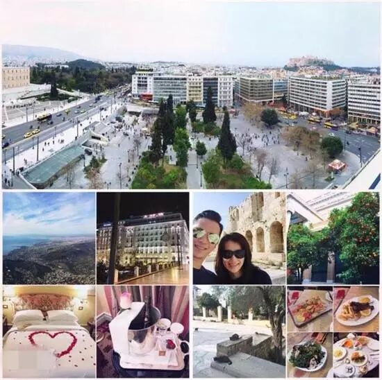胡杏儿与老公的蜜月之旅到希腊雅典