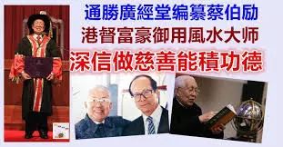 蔡老先生曾为不少香港富豪择日、选址、看风水,香港首富李嘉诚都是他几十年的好友,更有人称蔡伯励是李嘉诚的“御用风水师”。