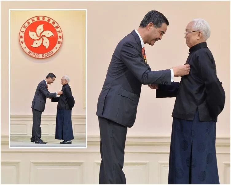 2015年,蔡伯励被香港政府颁发了金紫荆星章(林郑月娥也被授予过金紫荆星章),当时的特首梁振英亲自为他授彰。