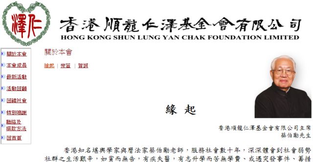 2006年,蔡老先生担任主席的顺龙仁泽基金会,在香港成立。