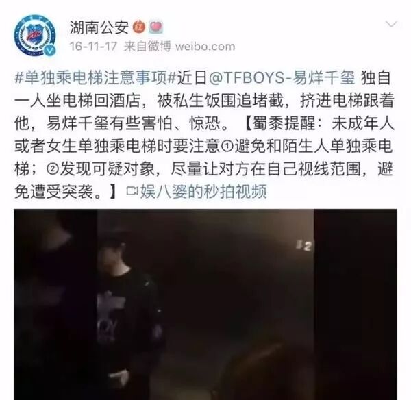 还有另一位团员易烊千玺的私生饭连公安的惊动了……